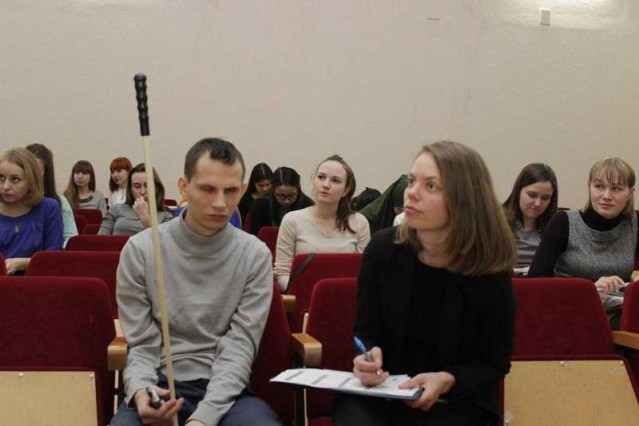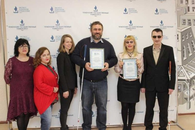 Именно этой проблеме был посвящён мастер-класс «Мультимобильность в трудоустройстве», который прошёл 21 февраля в институте психологии и педагогики ТюмГУ. Участников (гостей из Екатеринбурга и Челябинска, тюменских инвалидов, студентов кафедры инклюзивного образования) приветствовала директор Людмила Волосникова. Людмила Михайловна вручила благодарности за активное сотрудничество и взаимодействие по инклюзивному направлению президенту АНО «Белая трость» Олегу Колпащикову и доценту Южно-Уральского госуниверситета, кандидату юридических наук Юлии Шумовой. Также с приветственным словом к присутствующим обратились выпускник ТюмГУ Тимур Дугаров и студент второго курса Степан Панов.
