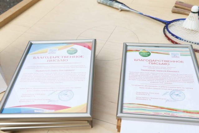 Областная организация инвалидов (ВОИ) и команда проекта «Спортивная площадка для инвалидов «Зеленый остров»» (автор Елизавета Фоминцева) подготовили благодарственные письма учредителю и организаторам конкурса грантов «Моя идея» (Павлу Белявскому, Ирине Широковой, Марии Федоренко, Ольге Петрушиной, Юлии Каргаполовой, Дарье Ермаковой). Вручили благодарности и партнёрам проекта: главному редактору газеты «Тюменские известия» Анатолию Кострову, фотокорреспонденту Евгению Шарову, исполнительному директору Федерации спорта лиц с ПОДА Татьяне Скворцовой, а также директору Делового центра «Вернисаж» Алексею Шишову. Алексей Юрьевич в свою очередь приехал не с пустыми руками - привёз наборы для творчества. Их вручат ребятам с инвалидностью, которые в октябре станут участниками военно-патриотической игры «Танковый турнир ТТ-72». Нешуточные бои на военном полигоне развернутся скоро - как только на спортивной площадке ВОИ появится безопасное покрытие.
