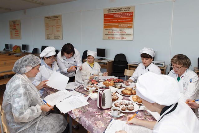 На самой многолюдной площадке столовой Западно-Сибирского колледжа запахами приготовляемых блюд были очарованы и волонтеры и посетители. Эксперты внимательно следили за технологией приготовления блюд в компетенциях «Выпечка хлебобулочных изделий», «Кондитерское дело» и «Поварское дело».