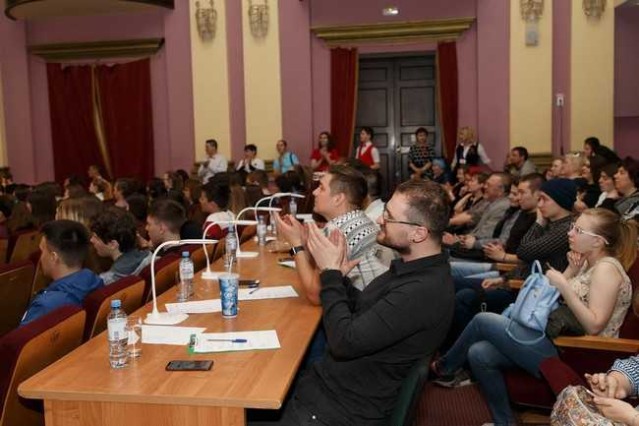 Пока компетентное жюри совещалось и решало, кому отдать главные трофеи областного фестиваля, своими шутками со зрителями поделились победители Межрегионального открытого Кубка КВН ВОИ команда «Родина Ершова» (город Ишим).