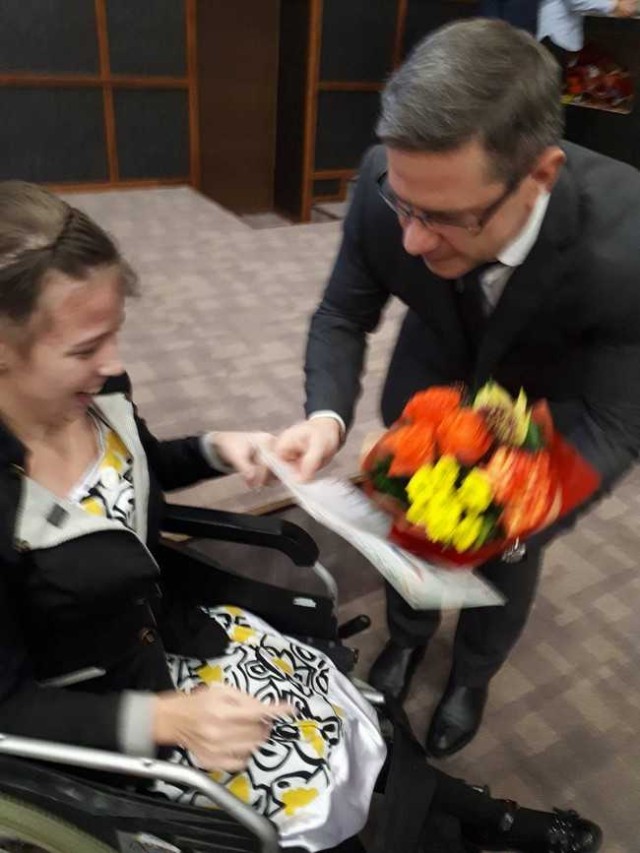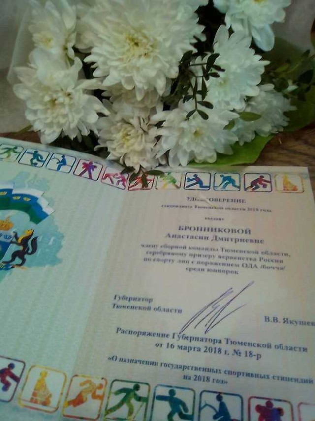 Среди спортсменов были и юные паралимпийцы, представители Федерации спорта лиц с поражением опорно-двигательного аппарата. Это Анаcтасия Бронникова, Никита Гамулин, Артем Зайцев, Марина Шабанова. Ребята занимаются боччей, легкой атлетикой и плаванием. Все будущие получатели стипендий - победители и призеры всероссийских и международных соревнований.