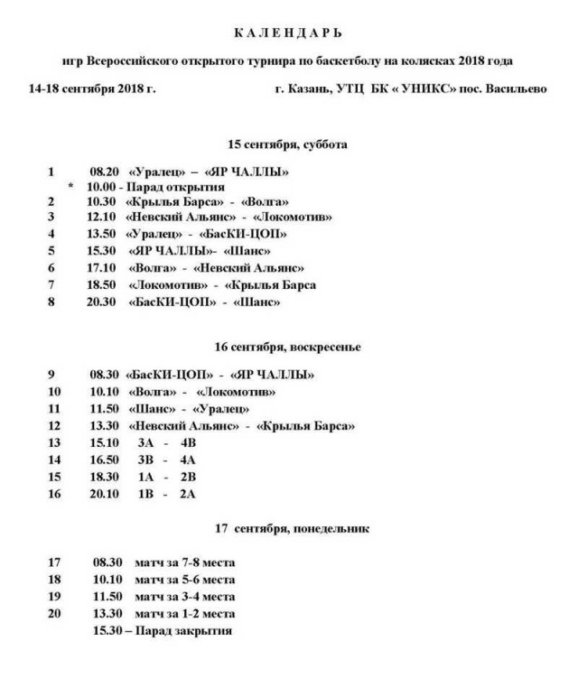Проходить он будет с 14 по 18 сентября в спортивном центре «УНИКС» (пос. Васильево).