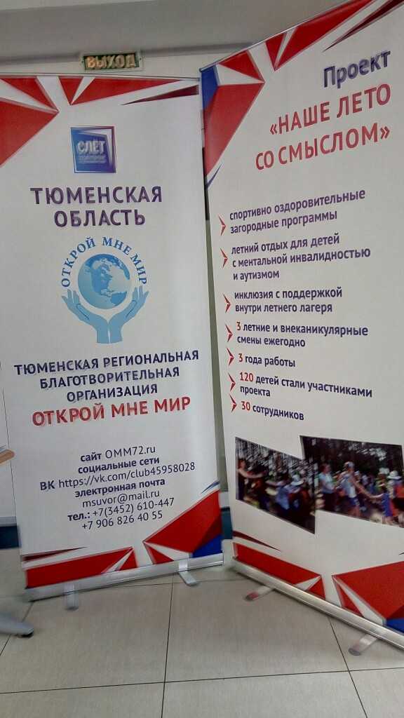 Интересен проект Тюменской региональной благотворительной организации "Открой мне мир". Его цель - это организация детских лагерей и площадок для детей группы риска, с особенностями здоровья в летнее время. Он так и называется - "Наше лето со смыслом".