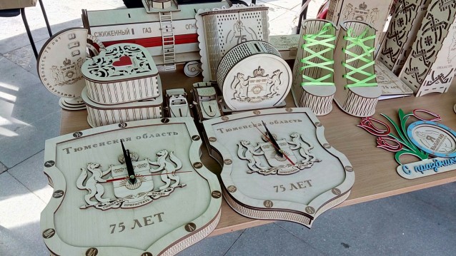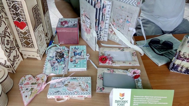В рамках празднования Дня города 27 июля на Площади Солнца в Тюмени развернулась большая выставка-продажа сувенирной продукции от известных и не только мастеров-ремесленников. В мероприятии под названием "Пикник книг" принял участие производственный участок "Каскад" Тюменской региональной организации Всероссийского общества инвалидов. Этим мастерам есть что показать. В многообразии были представлены шкатулки, копилки, купюрницы, бутылочницы, ключницы, карандашницы, часы. Практически вся продукция имела символику Тюменской области. Прекрасные подарки к юбилею области!