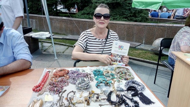 Свою сувенирную продукцию на выставке также представил грантовый проект для инвалидов "Академия рукоделия". Мастера Майя Фишерман и Людмила Меркушина представили украшения из натуральных камней и красивейшую бижутерию, симпатичные фотоальбомы, шоколадницы, фоторамки, фотопапки и подарочные коробочки. Мимо такой красоты горожане и гости праздника не могли пройти мимо.