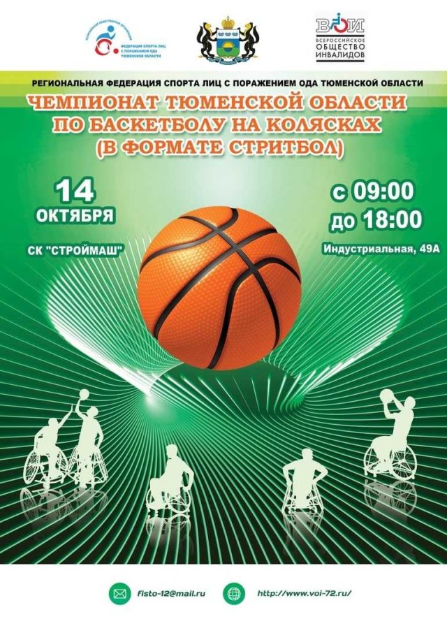Также 14 октября в спорткомплексе пройдет Чемпионат Тюменской области по баскетболу на колясках. Команды из областного центра и муниципальных образований встретятся в спортивных баталиях в формате стритбола. Начало игр в 09.00. Вход также по предварительной записи.