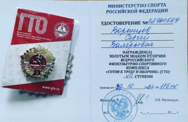 Специалист Ишимском районной организации инвалидов, председатель спортивного клуба" Надежда" Сергей Воронцов получил ряд приятных наград: Благодарственное письмо Департамента физической культуры, спорта и дополнительного образования Тюменской области "За вклад в развитие адаптивной физической культуры и спорта", подарки от Российского спортивного союза инвалидов за победу во Всероссийской акции "Спорт - норма жизни" и золотой знак отличия Всероссийского физкультурно-спортивного комплекса "Готов к труду и обороне" (ГТО).