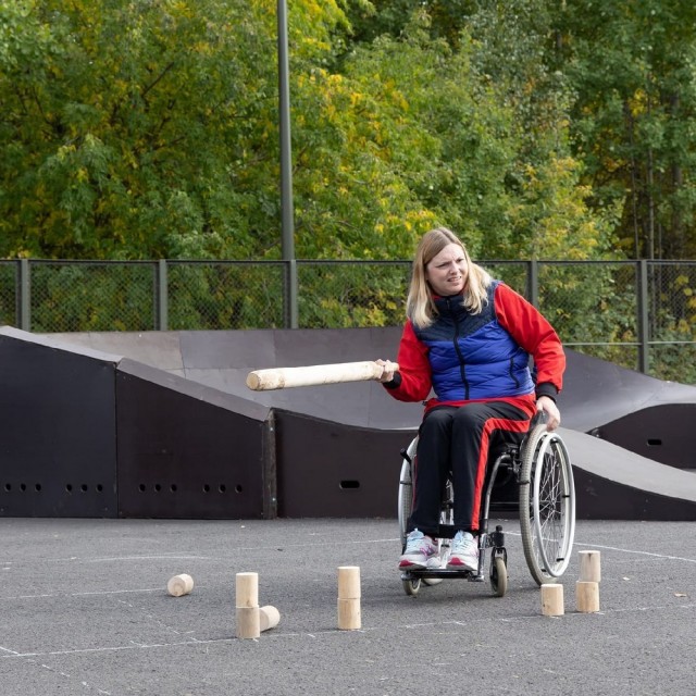 Благодаря проекту "Школа спортивной адаптации", ставшего победителем конкурса муниципального гранта Администрации города Тюмени, и поддержке региональной Федерации городошного спорта Тюменской области возможность поиграть в городки появилась снова.