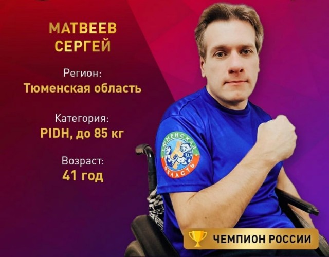 Мы можем с вами поддержать российских и тюменских спортсменов - Анатолия Шушарина (мастер спорта международного класса, весовая категория до 70 кг, борьба стоя), Владислава Чикишева (мастера спорта международного класса, весовая категория до 75 кг, борьба сидя на коляске) и Сергея Матвеева (l разряд, весовая категория до 85 кг, борьба сидя на коляске на одну руку).