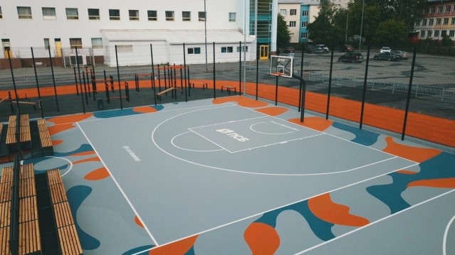 Площадь нового спортивного объекта 2000 квадратных метров. Кроме баскетбольной площадки, здесь есть уличные тренажёры, турниковые зоны - воркаут-зоны), беговая дорожка.