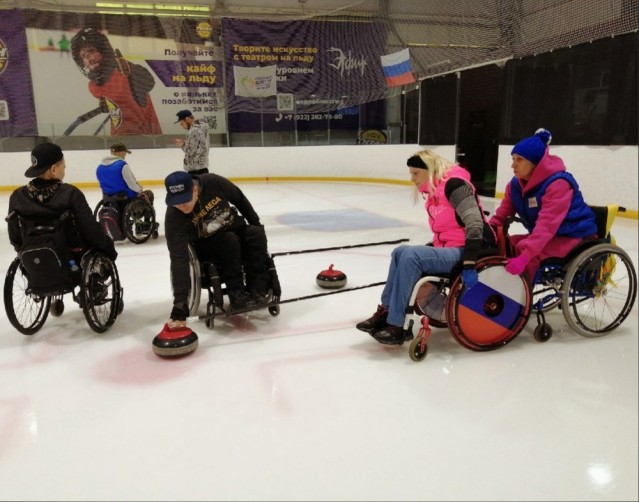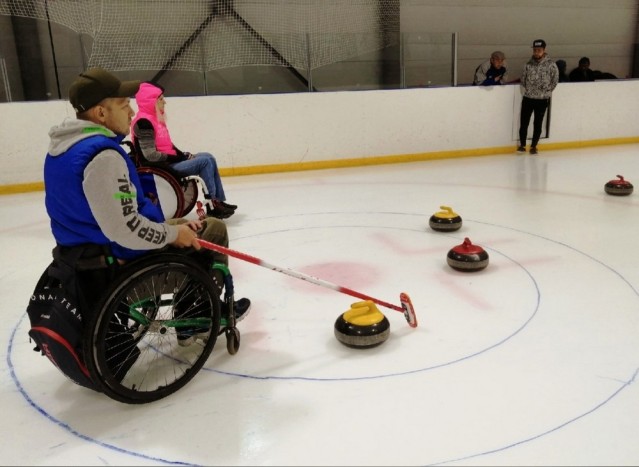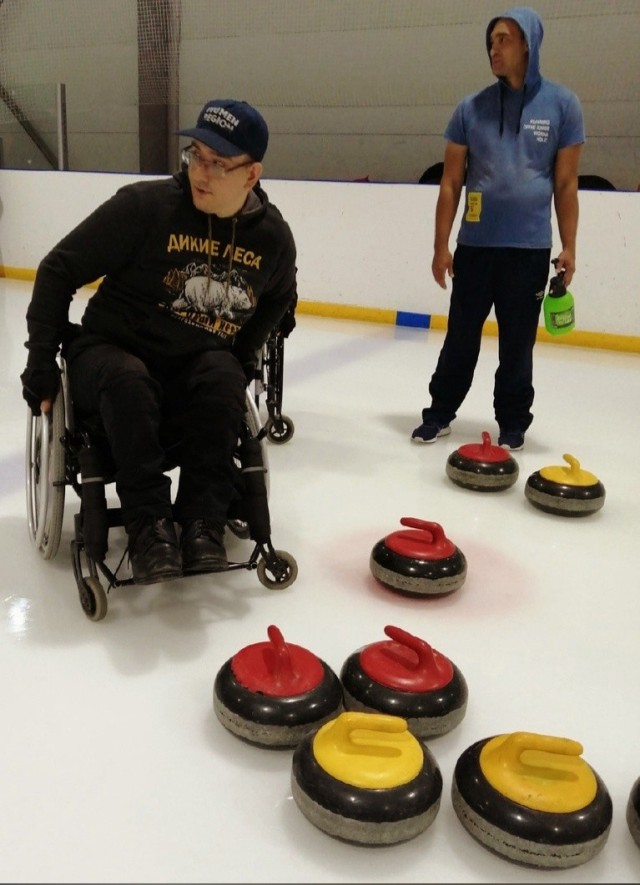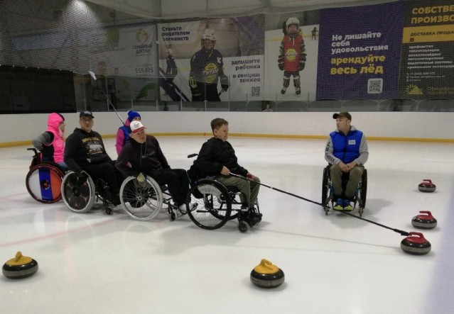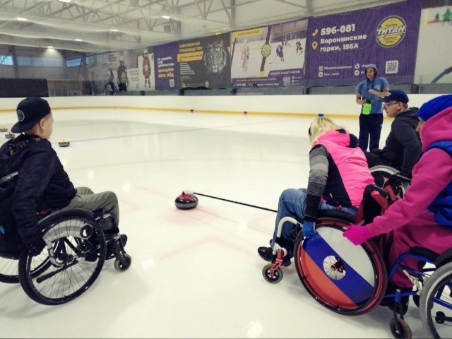 Спортсмены клуба инвалидов "Шанс", занимающиеся в группе керлинга на колясках, снова вернулись на ледовую арену "Титан".