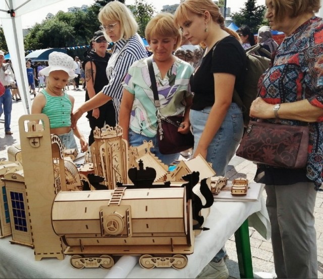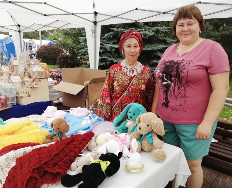 Умельцы не только предлагали жителям и гостям города свои изделия, выполненные в самых разных декоративно-прикладных техниках (резьба по дереву, лоскутное шитье, фьюзинг, интерьерная и обереговая кукла, батик), но и проводили мастер-классы.