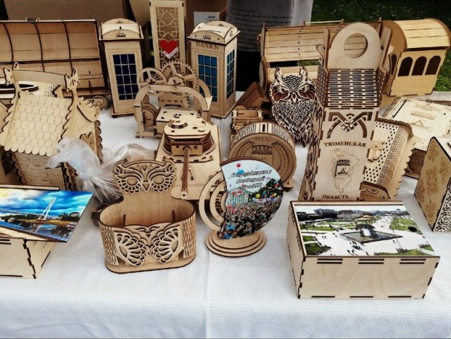 "Каскад" предлагал гостям сувенирную продукцию из фанеры: шкатулки, календари, магниты с символикой города и области, а также вазы, медальницы, ключницы, салфетницы, чайные домики и многое другое. Девушки представили вязаные изделия и мягкие игрушки.