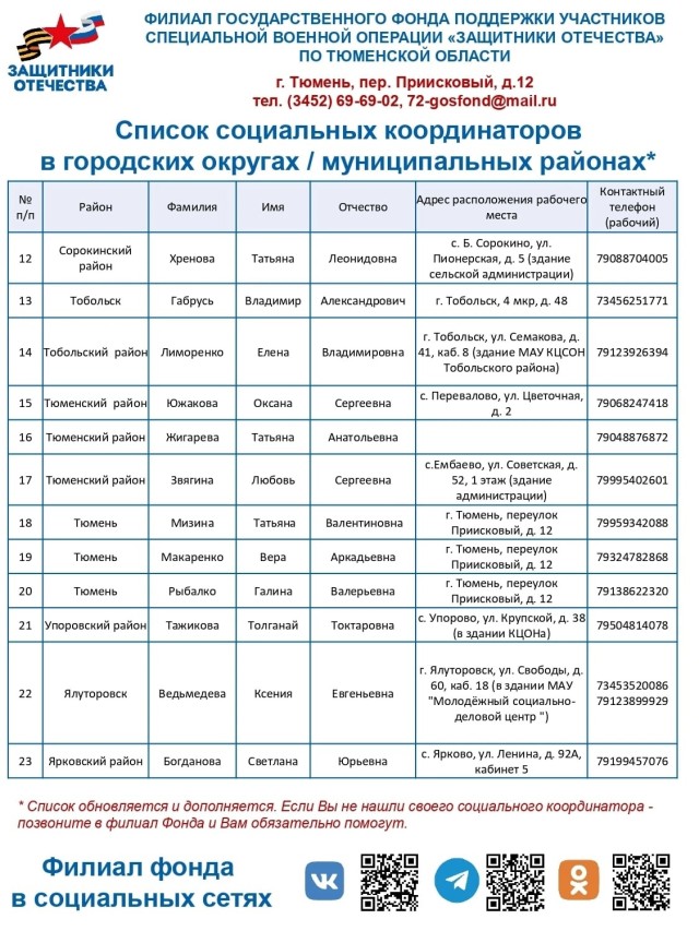 Кроме того, по всем вопросам можно обратиться к территориальным социальным координаторам.