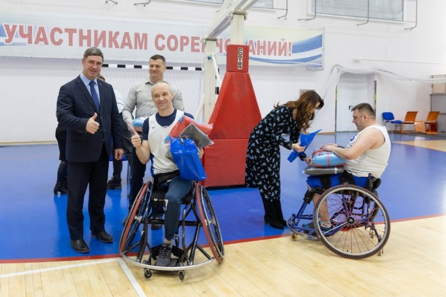 Также приветственные слова и пожелания нашим баскетболистам сказали директор департамента по спорту Администрации города Тюмени Сергей Борисевич, директор спортивной школы номер 3 города Тюмени Антон Романов и председатель Тюменской областной организации инвалидов Евгений Кравченко.