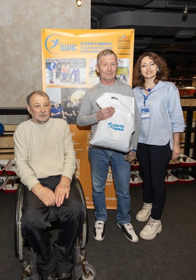 Олеся Юрьевна в своём приветствии отметила, что компания "Газпром недра" уже более 10 лет сотрудничает с Тюменской областной организацией ВОИ, но впервые принимает участие в мероприятии спортивного клуба инвалидов "Шанс". В рамках турнира коллега вручила подарки от компании троим игрокам - Наталье Жила, Андрею Давиденко и Ильсуру Бакирову.