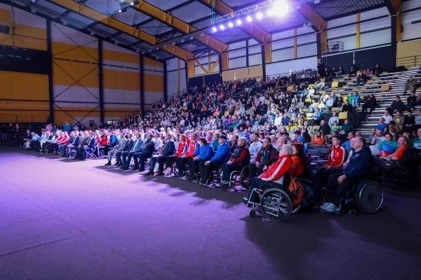 На сцене "Востока" лучших спортсменов страны, гостей и зрителей приветствовал Губернатор Сахалинской области Валерий Лимаренко, Приветственный адрес председателя Правительства РФ Михаила Мишустина зачитал Иван Потехин (заместитель руководителя Аппарата Паралимпийского комитета России).