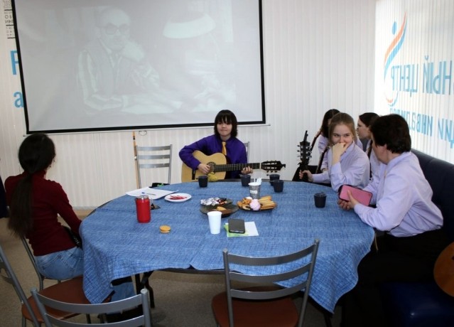 Участники гостиной вспомнили биографию мастера, послушали его самые известные стихи и песни в аудиозаписи, а также сами с большим удовольствием исполнили произведения Окуджавы.