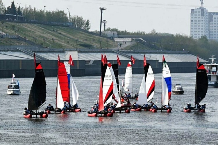 Зрители на набережной увидят, как профессионалы управляют парусами, маневрируют и выполняют различные фигуры на воде, воссоединяясь синхронно в единый парусный картеж.