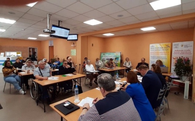 Второй блок первого рабочего дня семинарских занятий прошел в форме круглого стола и был посвящен вопросам медицинского обслуживания и лекарственного обеспечения инвалидов; прохождению обследования в медучреждениях и подготовке направлений на МСЭ; оказанию бесплатной медицинской помощи за счет средств ОМС; пилотному проекту комплексной реабилитации и абилитации детей-инвалидов. Коллеги узнали, что такое целевая реабилитационная группа (ЦРГ) и какие учреждения участвуют в пилотном проекте.