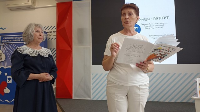 Финансовую и моральную поддержку в реализации проекта - издании книжки - оказала депутат Тюменской областной Думы, руководитель Штаба "Единой России" Ольга Швецова. На презентацию Ольга Владимировна пришла с букетом цветов и подарком, которые вручила Ольге Степановне, ведь в этот день руководитель лит.клуба праздновала день рождения.