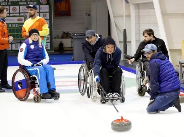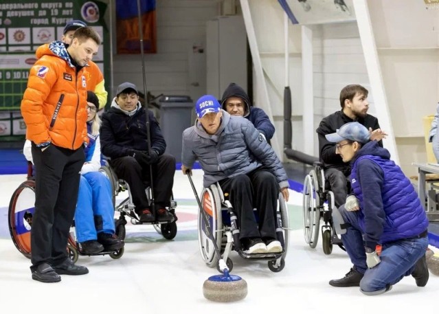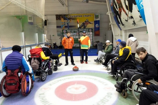 Тренировку на профессиональной керлинг-дорожке для 10 спортсменов на колясках провели член сборной команды России по керлингу, мастер спорта международного класса, участник Олимпийских игр Евгений Климов и президент Федерации керлинга Тюменской области, тренер по керлингу команды "Шанс" Константин Пережогин.