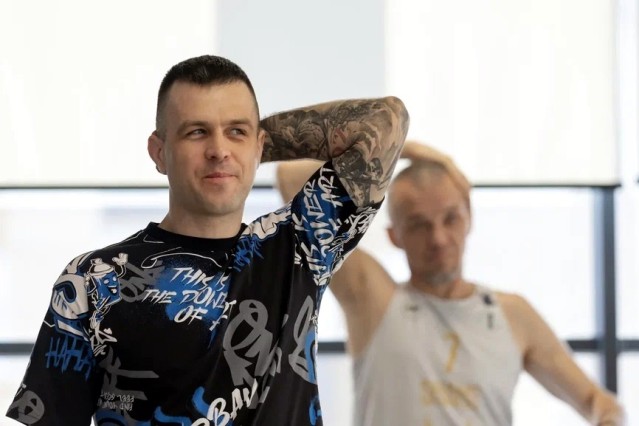 19 октября спортивно-оздоровительный день для занимающихся начался традиционно - с фитнес-разминки в зале под началом тренера-инструктора Тимофея Сёмочкина. "Любая нагрузка не должна быть во вред участникам группы, потому что у каждого из ребят есть определенные физические нарушения. Моя задача - учитывать все нюансы и возможности людей с инвалидностью при разработке упражнений, - говорит тренер. - Кроме того, мы работаем в группе, нас много - мне нужно видеть каждого. Сегодня, например, на фитнес пришли почти 30 человек. Двигаемся вперед".