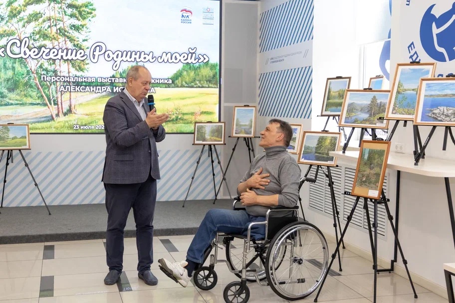 23 июля на площадке общественного пространства Тюмени прошло открытие персональной выставки картин художника с ограниченными возможностями здоровья, члена Тюменской областной организации ВОИ Александра Истомина "Свечение Родины моей".