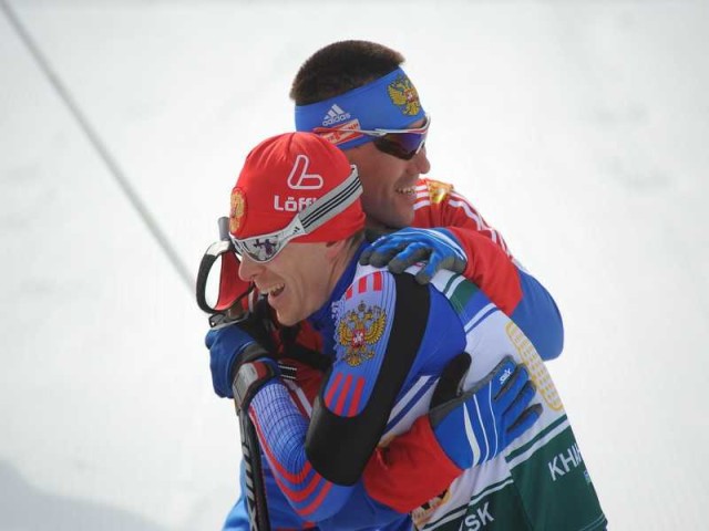 После мужской эстафетной гонки зрители на стадионе вновь скандировали слово «Россия». Сергей Шилов, Кирилл Михайлов и Николай Полухин (лидер Андрей Токарев) стали авторами еще одной золотой медали в активе сборной России. Первым стартовал Шилов и прошел свой участок дистанции с четвертым результатом, уступив Тругве Стейнару Ларсену 2 минуты 11 секунд. Эстафету принял скоростной Кирилл Михайлов, который преодолел свои 2,5 км с лучшим временем и вывел российскую команду на вторую позицию. На плечи Николая Полухина и его лидера Андрея Токарева выпала, казалось, невыполнимая задача – отыграть 1 минуту 35 секунд у норвежца Нильса-Эрика Ульсета. «Русские ракеты» не только догнали соперников из Норвегии, но и пришли на финиш с преимуществом в 10,2 секунды. В результате у сборной Норвегии серебро. Бронзовыми призерами мужской эстафетной гонки стали спортсмены из Украины.