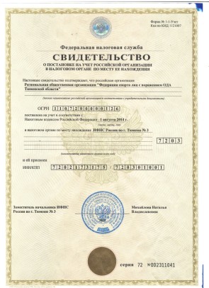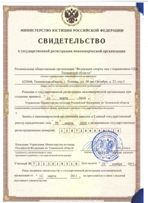 РОО «Федерация спорта лиц с поражением опорно-двигательного аппарата Тюменской области». Документы.